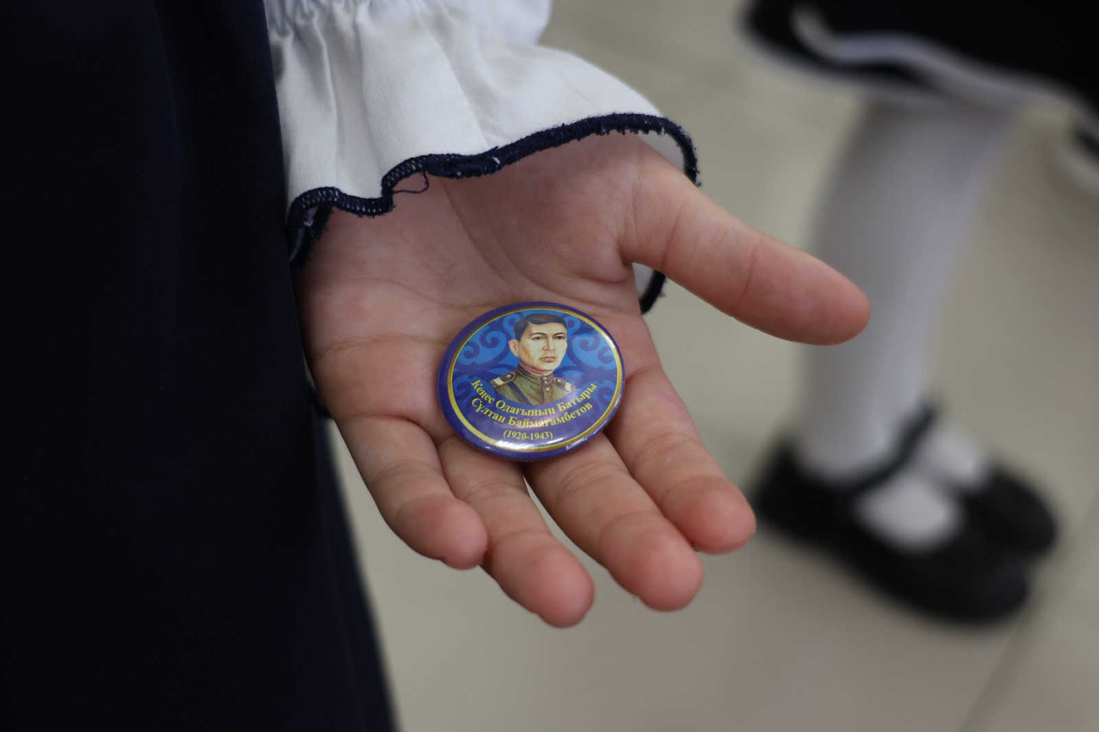 В честь знаменательной даты состоялось возложение венков к бюсту Героя на площади перед учебным заведением, а после – посвящение 67-ми обучающихся первых классов в ряды юных баймагамбетовцев. Право одеть значки была предоставлена ветеранам педагогического труда, выпускникам и активистам школы, представителям госорганов.